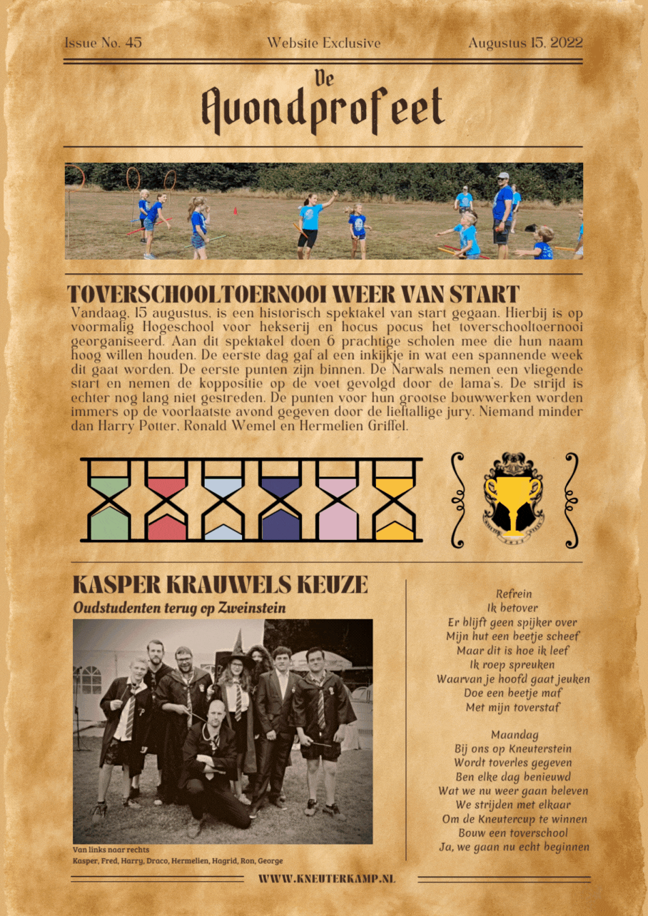 We hopen er weer een magisch Kneuterkamp van te maken dit jaar! Tot ziens in augustus!